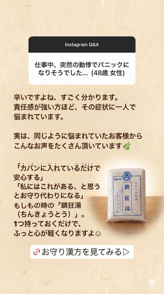 #動悸 #パニック #不安感 #予期不安 #仕事のストレス #ストレスケア #メンタルヘルス #メンタルケア #自律神経 #自律神経を整える #自律神経失調症 #更年期 #更年期障害 #ゆらぎ世代 #漢方 #漢方薬 #煎じ薬 #鎮狂湯 #お守り #安心感 #心と体を整える #自分を大切に #喉のつまり #ヒステリー球 #梅核気 #漢方のある暮らし #青木流芳院